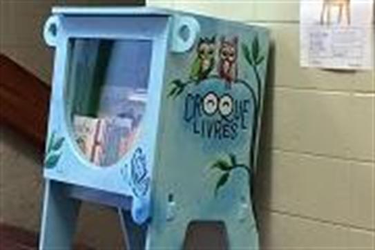 La Bibliothèque Louis-Ange-Santerre à décidé d'adopter un croque-livres afin de rendre les livres accessibles dans des lieux d'activités afin d'agrémenter et d'améliorer le temps passer en ces lieux.